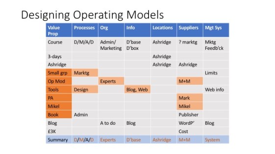 But I am determined to have a go at this format for a business I know well to see if it can be made to deliver something more dramatically insightful, as I tried to do on pages 144 and 145 of Operating Model Canvas.